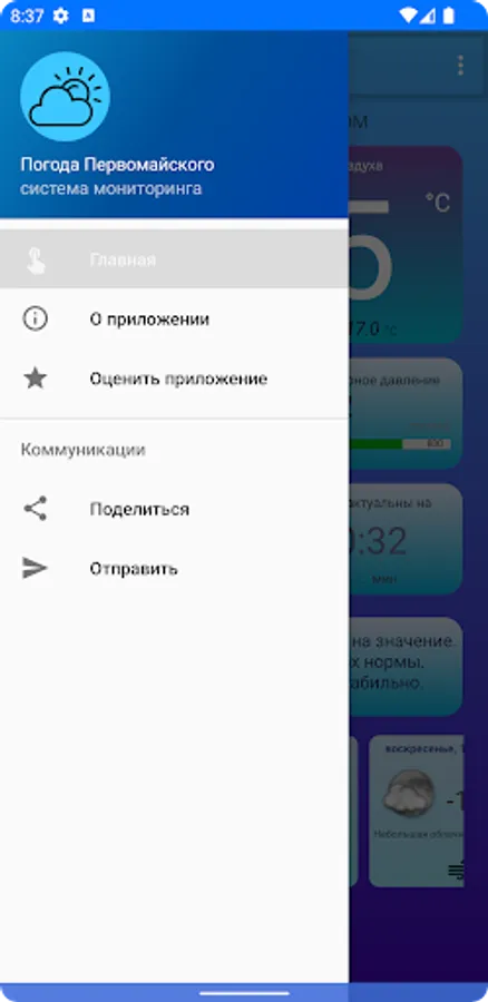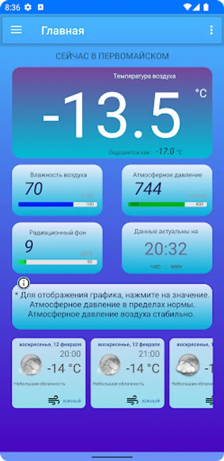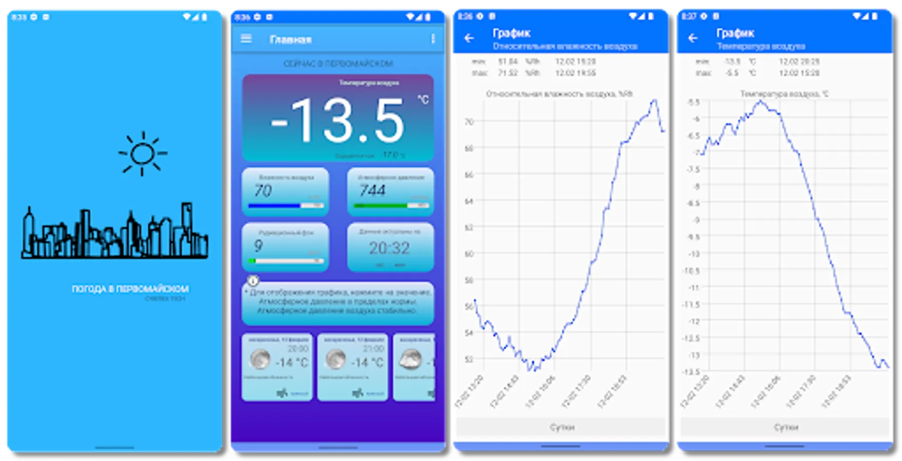 An application for accessing the data of a weather station installed in the village of Pervomaisky, Chelyabinsk Region.