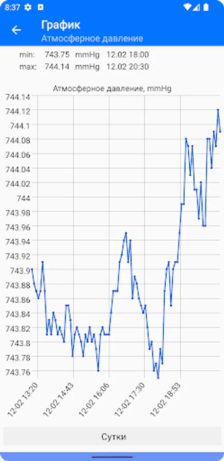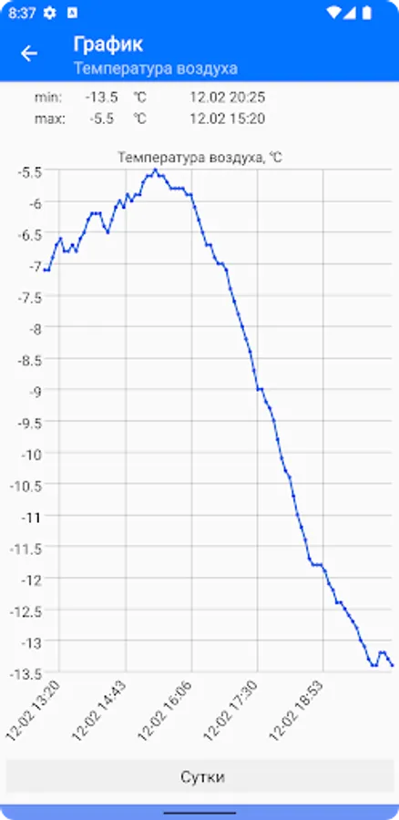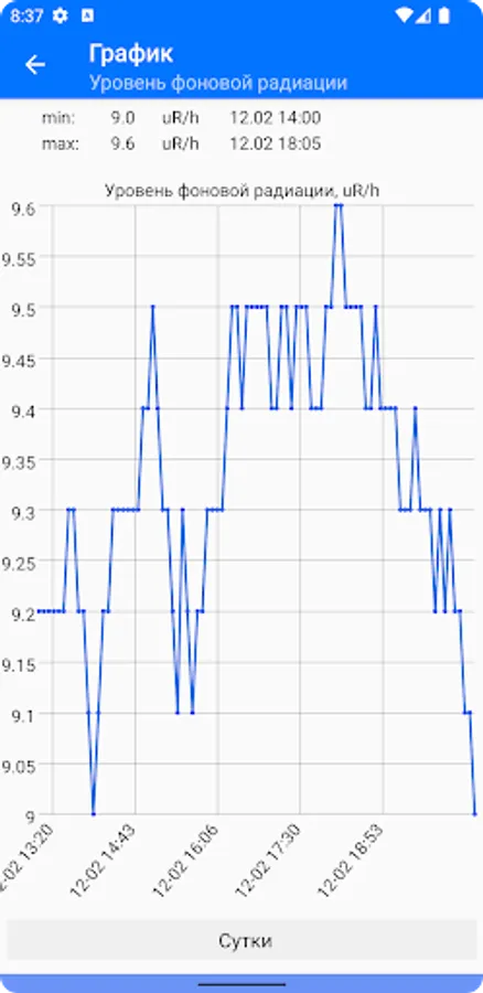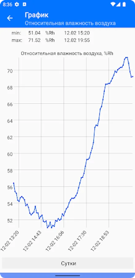 The application has the function of displaying a graph with the necessary parameters, there are widgets for displaying current information.