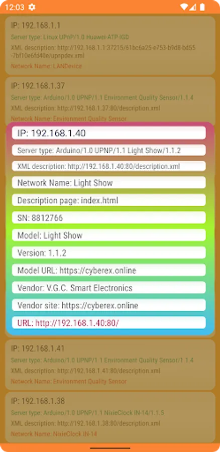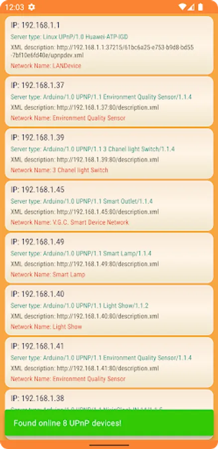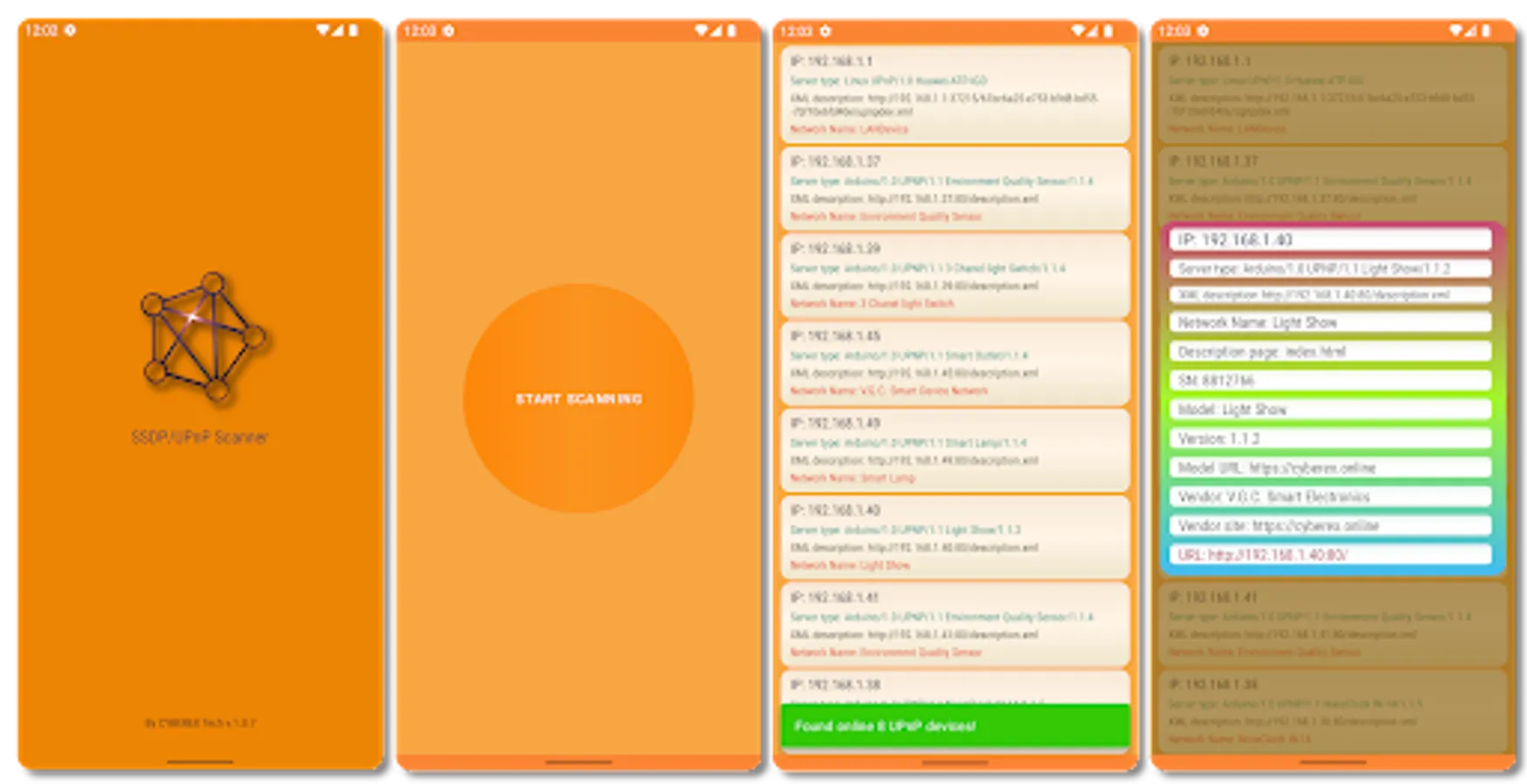 A mobile network device discovery application that uses the SSDP (Simple Service Discovery Protocol, SSDP) protocol. This application, as a tool, is useful for IoT developers or just those who need to scan the network to find UPnP devices.