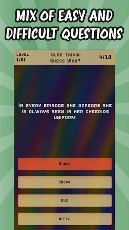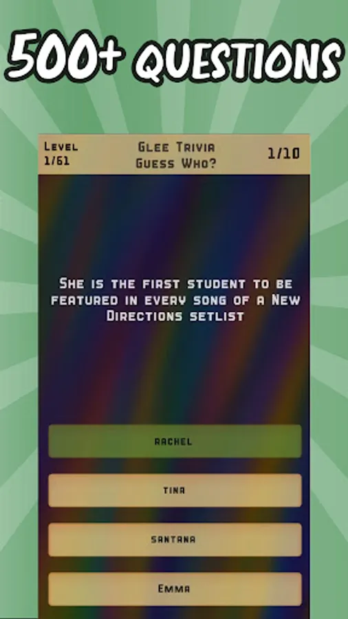 So whether you're a Glee expert or just a casual fan, there's something for everyone in Glee Trivia Quiz. So join the Glee club today and see how well you know the show that took the world by storm!