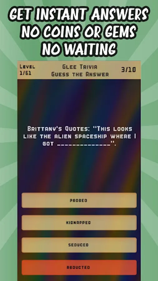 Are you a Glee fanatic? Do you know every lyric to every Glee song? Are you a member of a Glee club? If you answered yes to any of these questions, then Glee Trivia Quiz is the game for you!