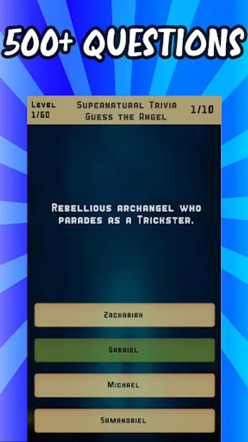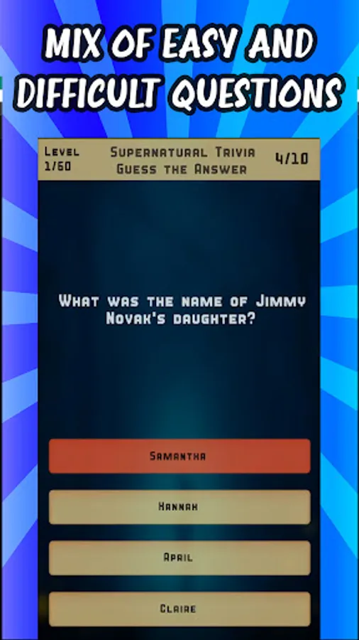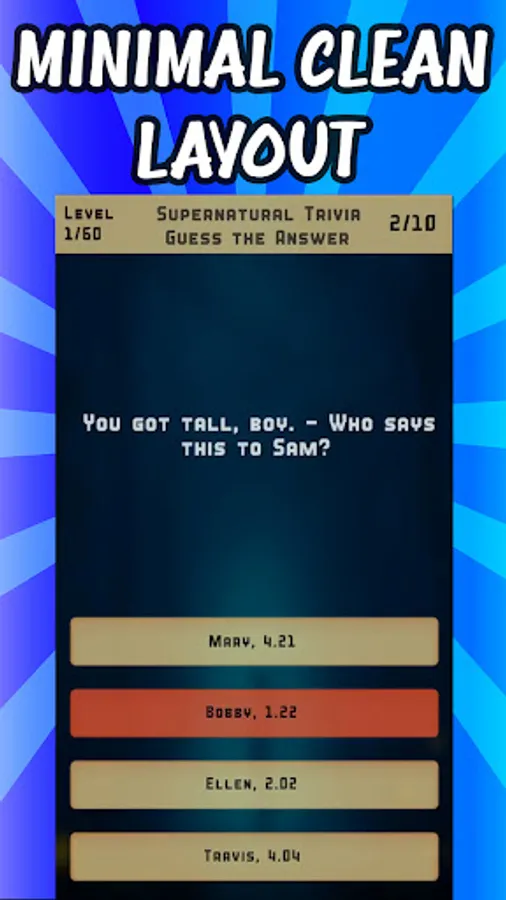 Do you think you know everything there is to know about Sam and Dean Winchester and their epic journey to save the world from supernatural threats? Then "Supernatural Trivia Quiz" is the perfect game for you! This exciting game is perfect for fans of the hit TV show, which follows the adventures of Sam and Dean Winchester as they hunt down creatures of the supernatural world.