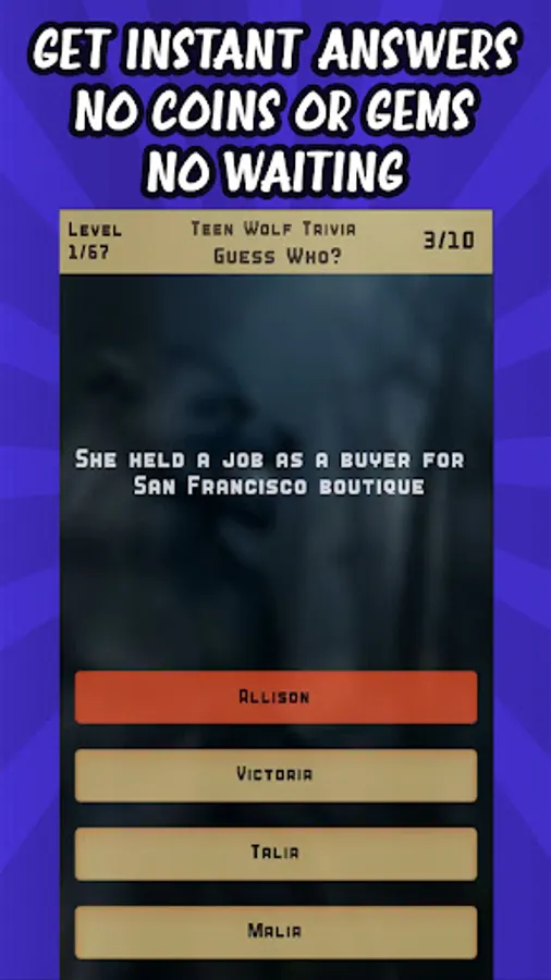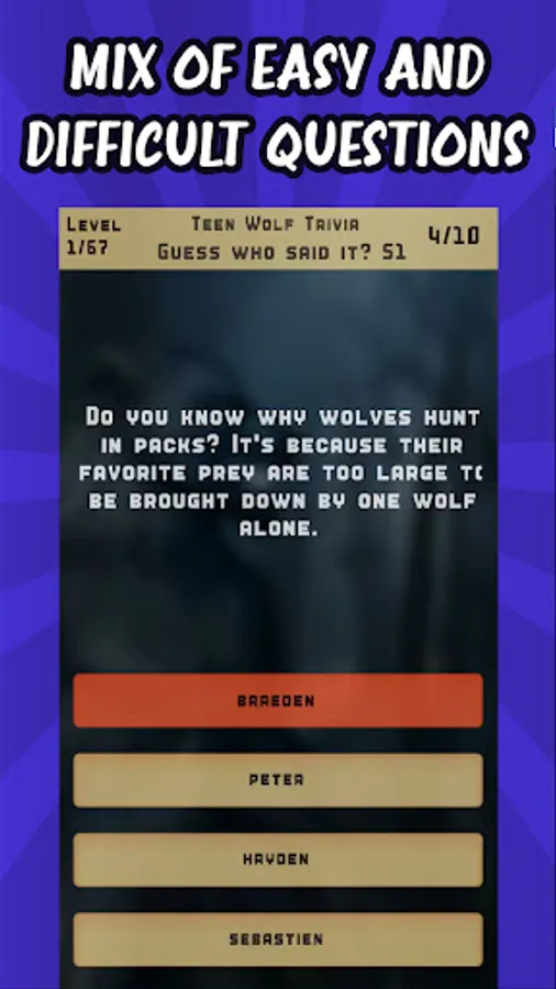 This exciting quiz game features hundreds of trivia questions about your favorite characters, episodes, and moments from the show. From Scott's journey as a werewolf to the supernatural events in the town of Beacon Hills, Teen Wolf Trivia Quiz has something for every fan.