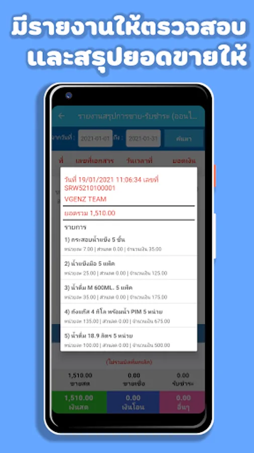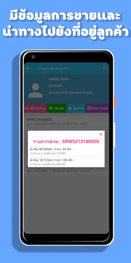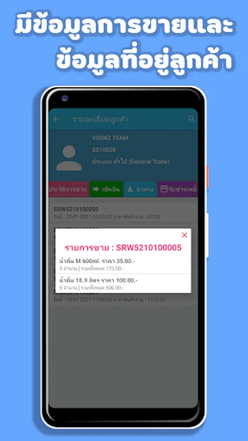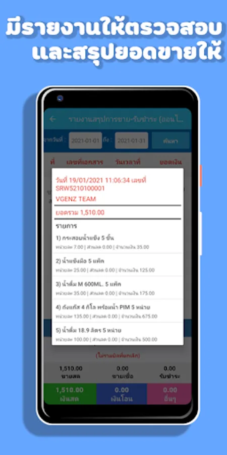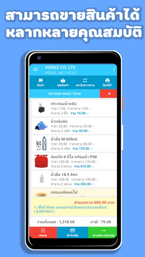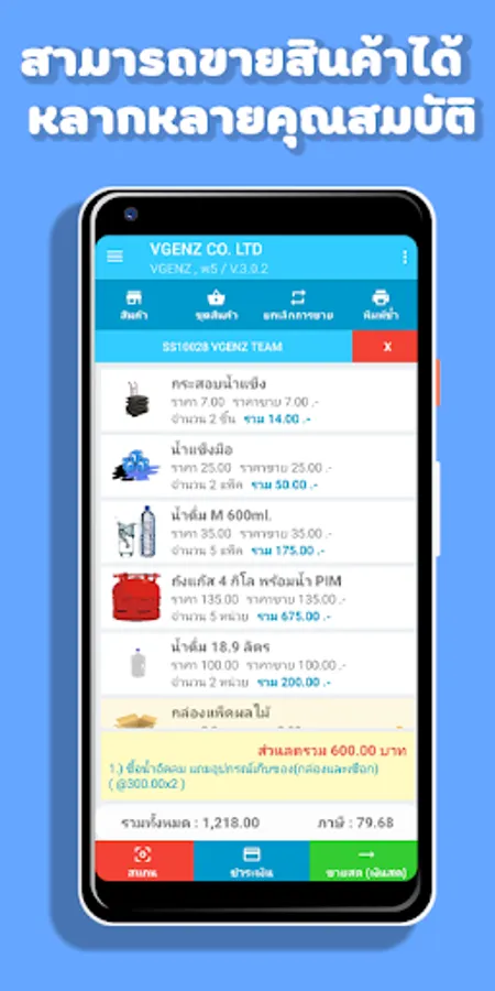Representative for Commercial Services (Vansale) that is easy to use anywhere, even without the Internet. Mini Printer can issue receipts via Bluetooth Sync system, the customer sets the style of its VAT receipts. The mining center (DC) to work on the car immediately. They are also able to use the Cloud to view reports such as sales reports, reports on the entry and exit of goods. Graphs of sales outlets immediately.
