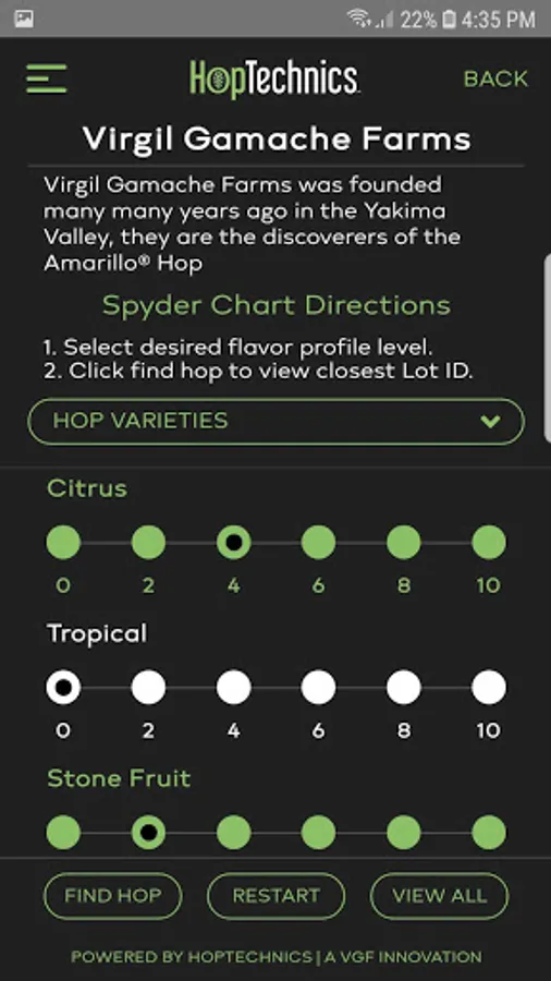 A new way to brew and a new way to sell. HopTechnics™ is an interactive, hop flavor profile selector. Hoptechnics™ allows distributors to promote the unique qualities of their inventory while allowing brewers a new way of planning and brewing amazing beers. HopTechnics™. The science of hops at your fingertips.™