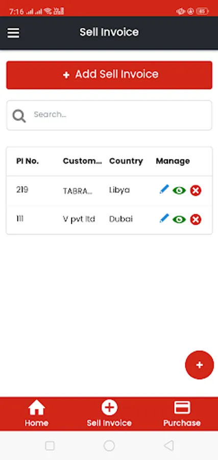Performa invoice, Customer Selection, Country, Port, Product with category and subcategory selection with packing and Bags material selection, Delivery date, Total Cost, Bags capacity notes, General notes and PI pdf.