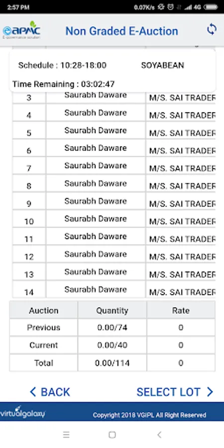 Using this Application, the traders will quote the price for commodities displayed in the Auction. Once the winner is declared, apmc employee will generate winner list and other reports.