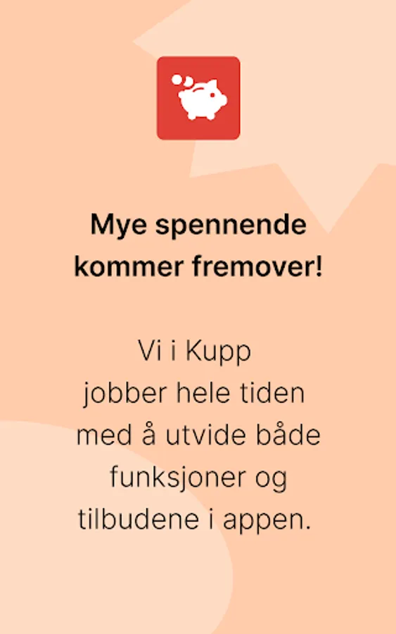 We are continuously working to develop the app based on suggestions and feedback from you. Feel free to contact us both with criticism and praise, or if you have good ideas for improvements and new smart functions, via hei@kupp.no.
