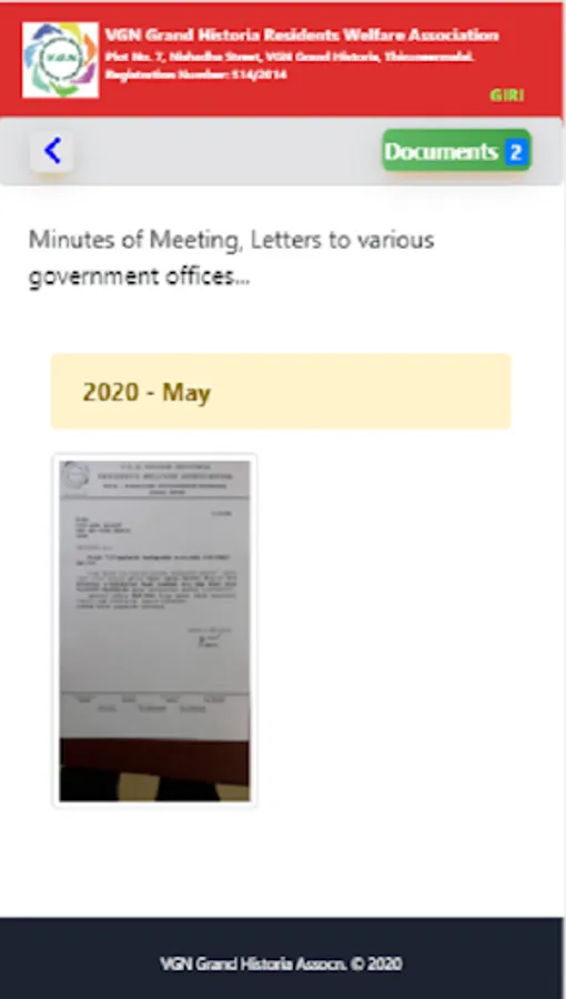 This app is exclusively designed and built for VGN Grand Historia Residents Welfare Association. It maintains the residents details, enables communication channels to the owners of the plots/flats, collects the residents feedback, tracks to closure , and also preserves the important correspondences like minutes of the meetings, letters to the various government departments to carry out some actions for the welfare of the associations etc.