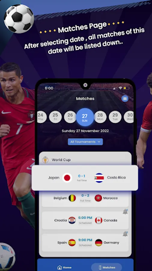 Go around with the most popular competitions all over the world and over your country like UEFA Champions League, Premier League, La Liga, Series A, and more.
