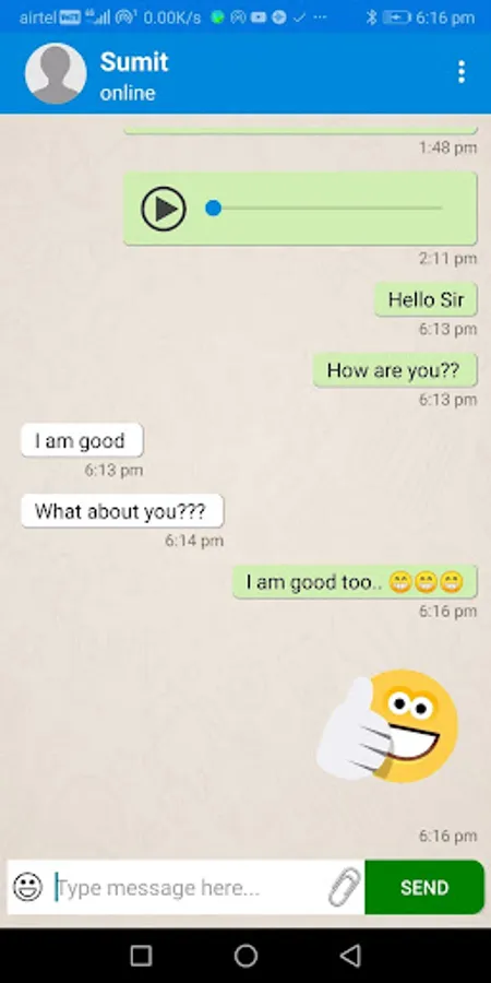 it is an instant messaging app in one can chat or share file with someone already on this app. One just need to create an account on this app and search someone known with his/her user name who is already on this app and add him/her in his friends list then he will be ready to share any text in mind and any type of file in his phone. User can block any one