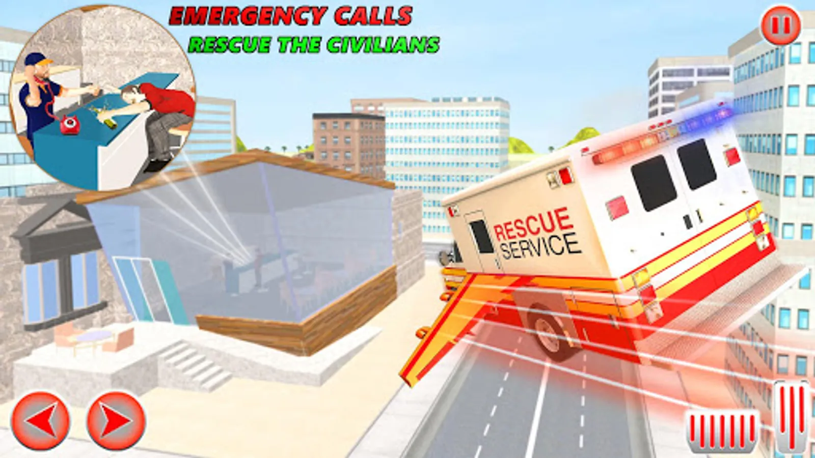 All about the cars start saving the lives in emergency flying city ambulance rescue game. Love to play adventure road trip Flying Ambulance Rescue Emergency Game and rescue the peoples with matchless flying speed.