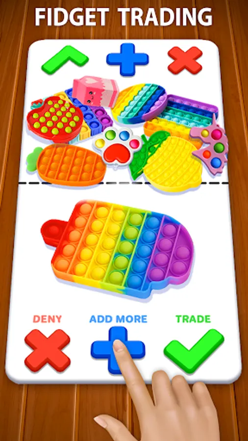 Trade with opponents in this DIY pop it fidget toys 3d game, unlock luxurious DIY antistress game items expand your collection of fidget toys game and discover the magic of this amazing DIY fidget trading online asmr game 2022. Throw your fidget toys tools onto a table and see what your opponent has to offer in this fidget cube 3d. If accept the pop maker trade to seal the deal or demand more items in this DIY slime satisfying asmr games.