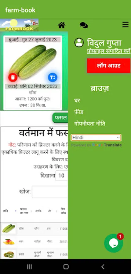 Farmbook is a log or journal of all the farmers putting their growing details in the system, which lets the other farmers decide what they can grow in the same area.