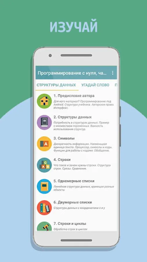 In this part, the main emphasis is on the study of data structures as a tool for processing information programmatically. Symbols, strings, one-dimensional and two-dimensional lists, algorithms for their processing, encryption, recursion, data sorting. Bonus: quick sort algorithm and long arithmetic.