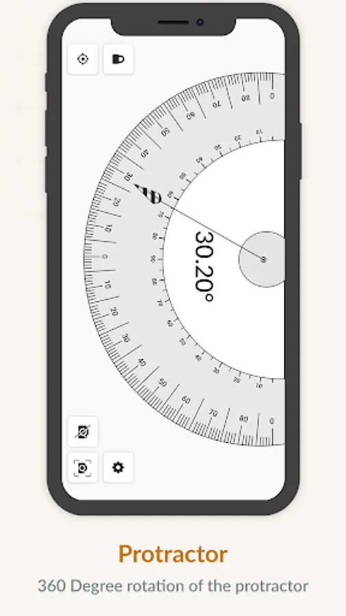 - Protractor: Measure angles in degree.