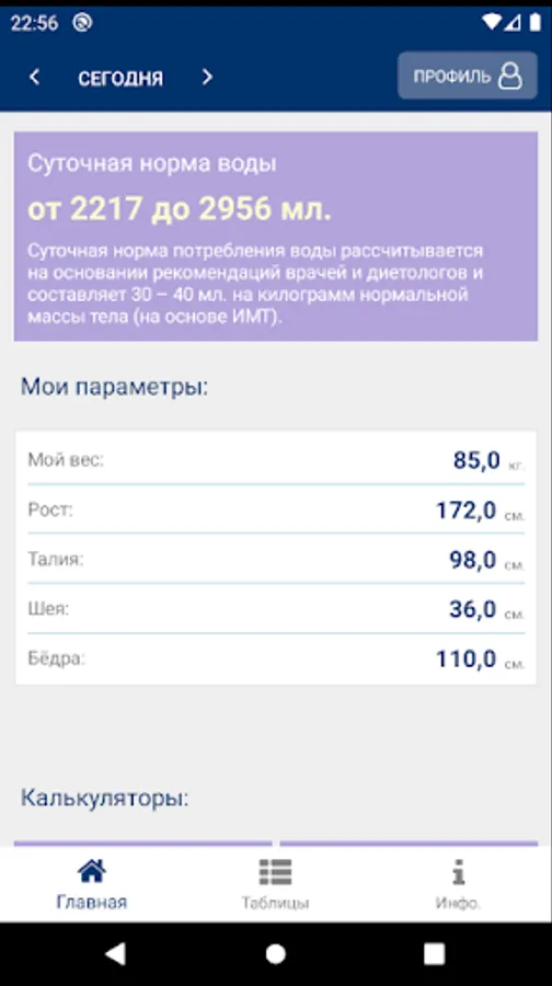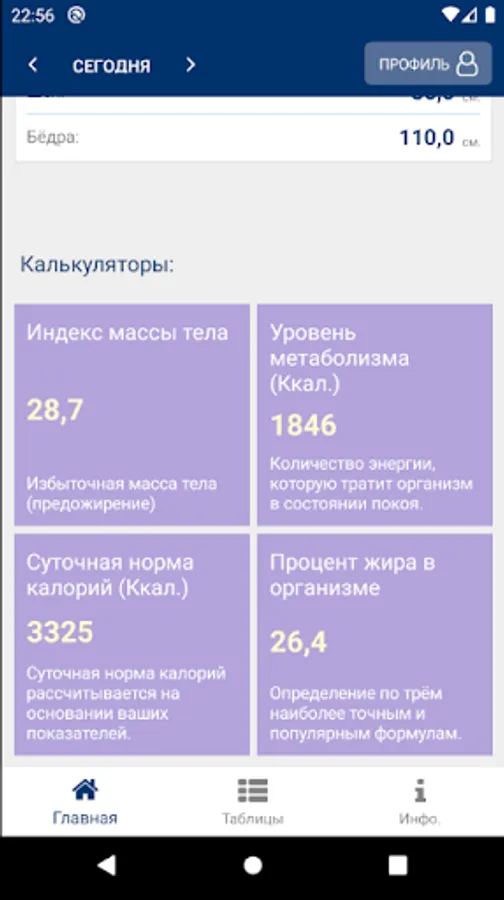 Automatic determination of your daily calorie intake based on your weight, gender, age, and activity level.