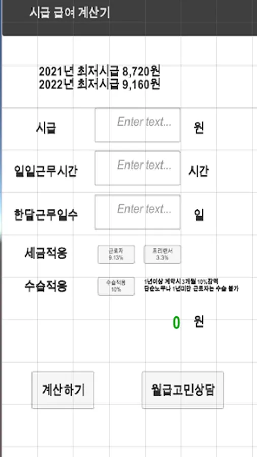 Hourly wage calculator includes hourly wage and 4 major insurance freelance tax calculations.