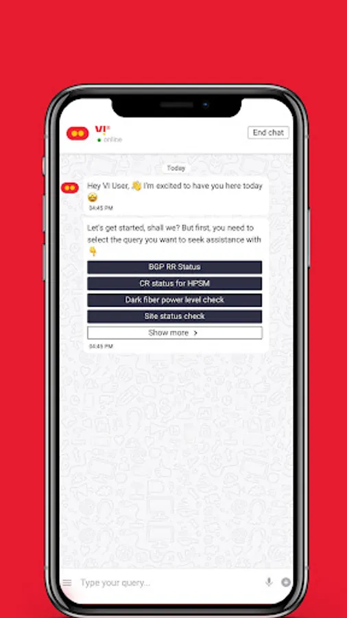 SNOC Chabot is an app developed for Internal Vi Operations teams to get near real time data from the Vi ecosystem via chat messages. This app will save your time and efforts of making multiple follow up calls between different functions, thereby, enhancing your overall operational efficiency.