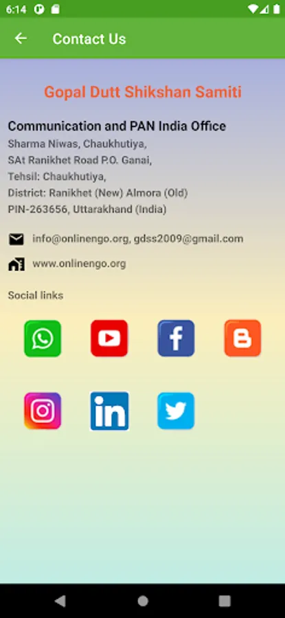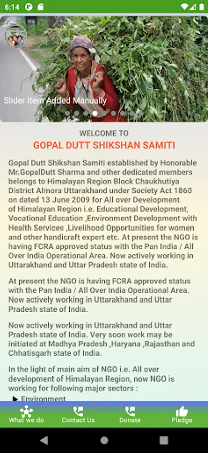 Gopal Dutt Shikshan Samiti established by Honorable Mr.GopalDutt Sharma and other dedicated members belongs to Himalayan Region Block Chaukhutiya District Almora Uttarakhand under Society Act 1860 on dated 13 June 2009 for All over Development of Himalayan Region i.e. Educational Development, Vocational Education ,Environment Development with Health Services ,Livelihood Opportunities for women and other handicraft expert etc.