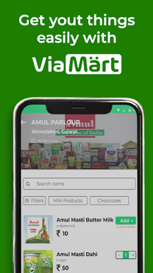 ViaMart is Nearby Shopping App for anything you want from your nearby stores within 45 minutes. You can choose from a wide range of store category likes Grocery Shop, Restaurants, Diary Parlours, Sweet Marts, Bakeries, Stationery, Fruits & Vegetables.