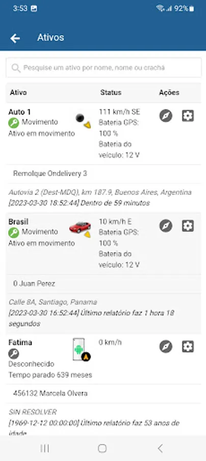 Online access to information of the current position or last position of the trip.