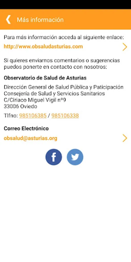 The application allows to know the summary health situation of each of the Asturian municipalities through a summary “photograph” of 25 health data (results and socioeconomic determinants, quality of care, behavior and environment). In addition, in this new version, it is possible to access basic information of all the healthy activities / resources included in the database (currently 530 of which 430 are active). Access to activities can be done by direct geolocation or by thematic search and brief information about this activity, the distance in relation to the position of the person making the query and the path to that resource is presented.