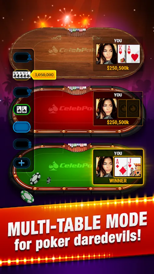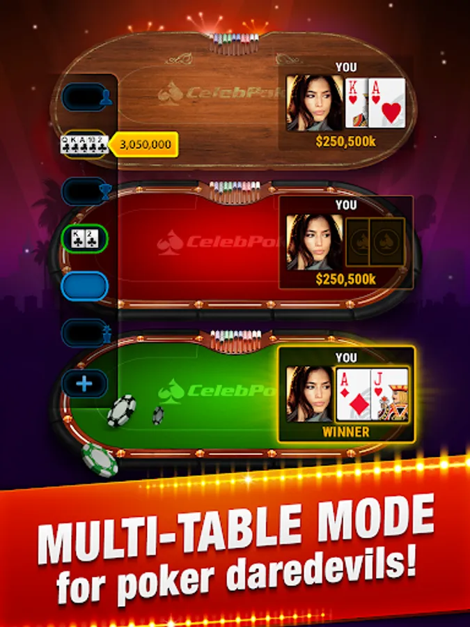 This game is intended for adult audience and neither offers real money gambling nor an opportunity to win real money. Success at social gaming cannot imply future success at real money gambling. Use of this application in governed by Celeb Poker terms of service:
