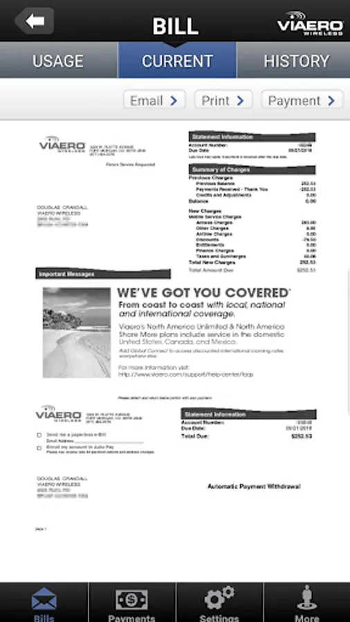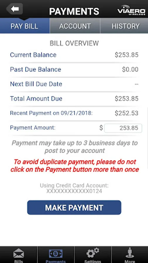 Viaero’s BillPay mobile app allows the Viaero Responsible Party (the person that pays the bill) to: