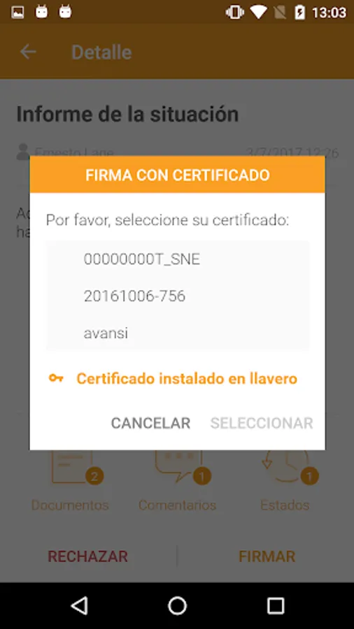 With native application for Android signatures agenda Viafirma inbox you can manage the document tray and sign them electronically from your mobile device. Access to the application can do so via user name and password or digital certificate you have installed on the device. You can also: