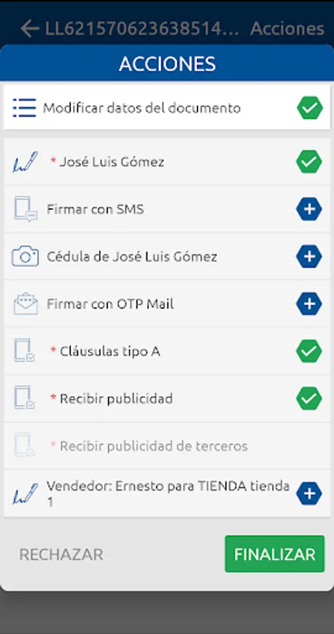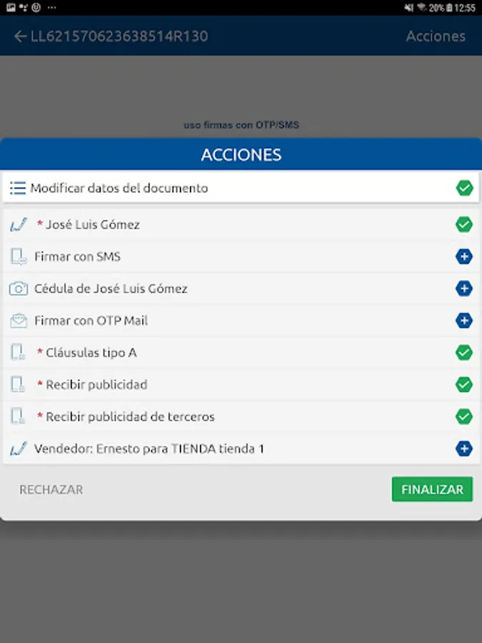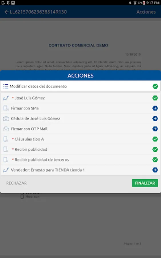 The application is designed for any scenario in which it is necessary to eliminate the role in the signing processes with clients or users external to an organization: informed consent, formalization of contracts, acceptance of merchandise, etc.