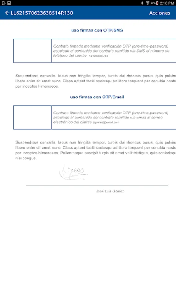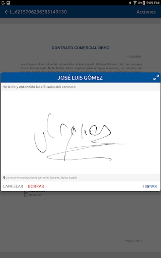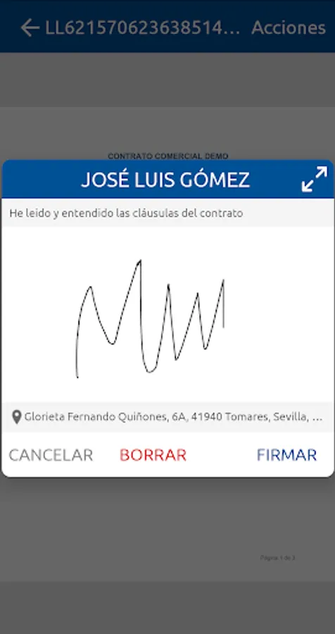 This application supports the digitized signature or biometric signature, based on the capture of electronic evidence such as biometric data, photograph or geolocated position of the signer, among others.