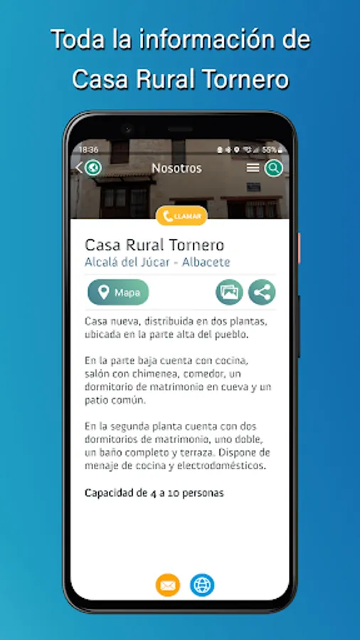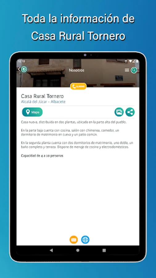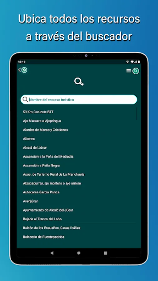 It also has a system that will allow you to mark all your favorite options to better plan your vacation. With our guide to Casa Rural Tornero in Alcalá del Júcar, you will be able to find the best places in the area. Through its resource search engine you can write what you are looking for and the app will inform you in each case where you can find it.