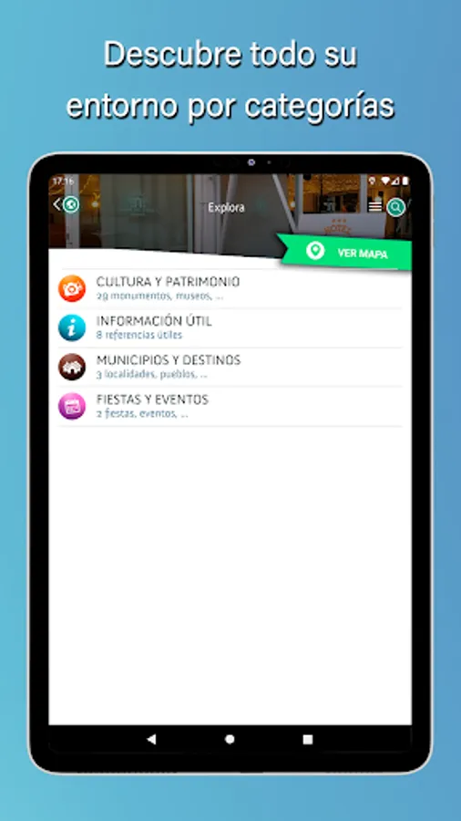 This travel application will make you enjoy content organized by categories and subcategories that will allow you to navigate optimally through them and thus find what interests you the most. And even all those resources will have the option of how to get there.