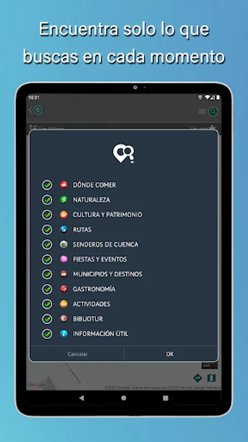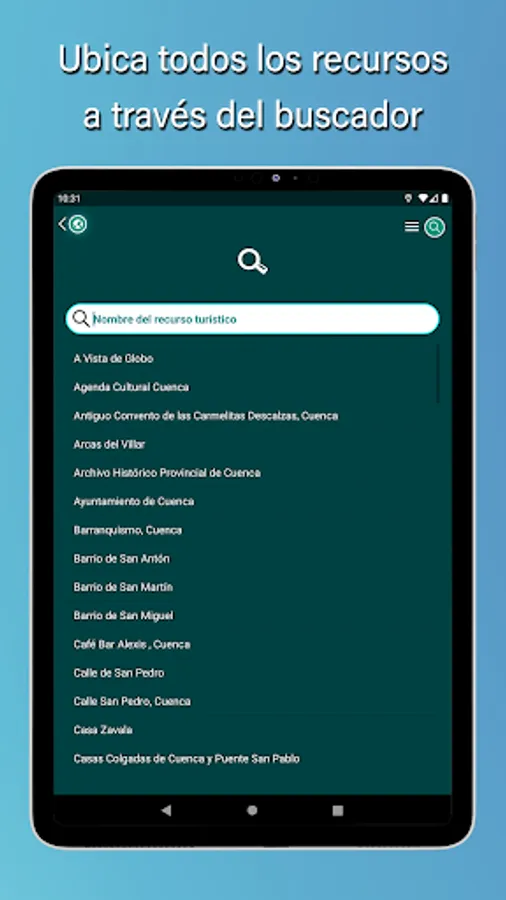 With our app you will be able to see first-hand a guide in digital format configured as a virtual tourist office about Cuenca and its surroundings, GPS-guided routes, nature, activities and special itineraries, gastronomic, cultural and leisure proposals.