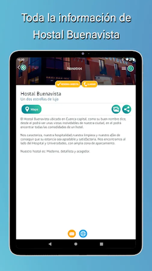 With our guide to Hostal Buenavista in Cuenca, you will be able to find the best places in the area. Through its resource search engine you can write what you are looking for and the app will inform you in each case where you can find it.