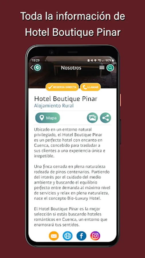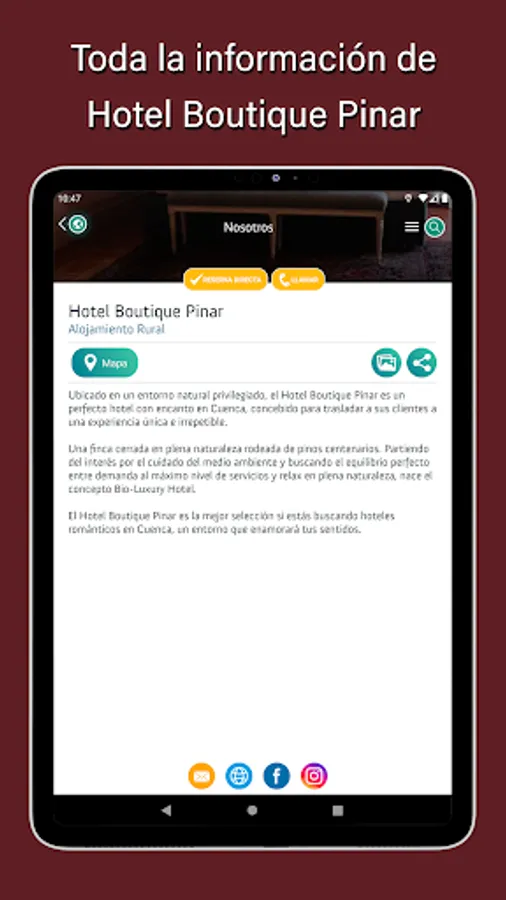 With our guide to Hotel Boutique Pinar in Cuenca, you will be able to find the best places in the area. Through its resource search engine you can write what you are looking for and the app will inform you in each case where you can find it.
