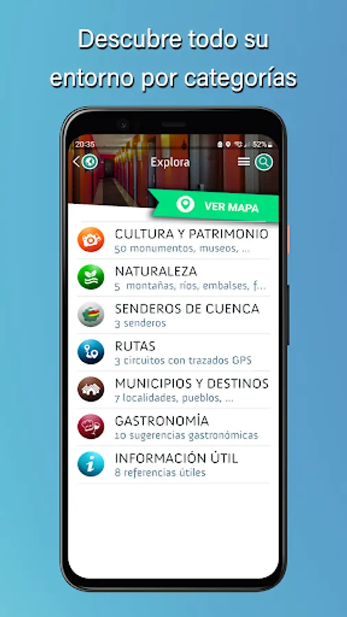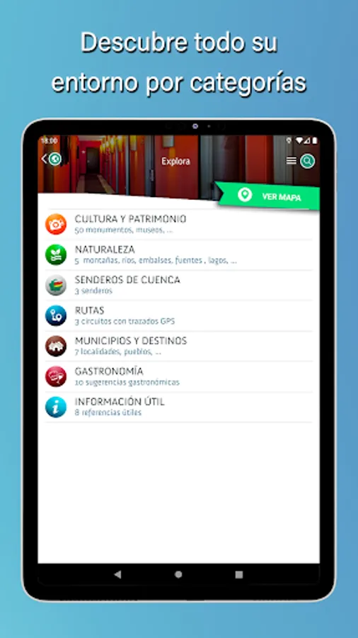 Esta app de viajes te hará disfrutar de contenidos organizados por categorías y subcategorías que te permitirán una navegación óptima por los mismos y así encontrar lo que más te interese. E incluso todos esos recursos tendrán la opción de como llegar.