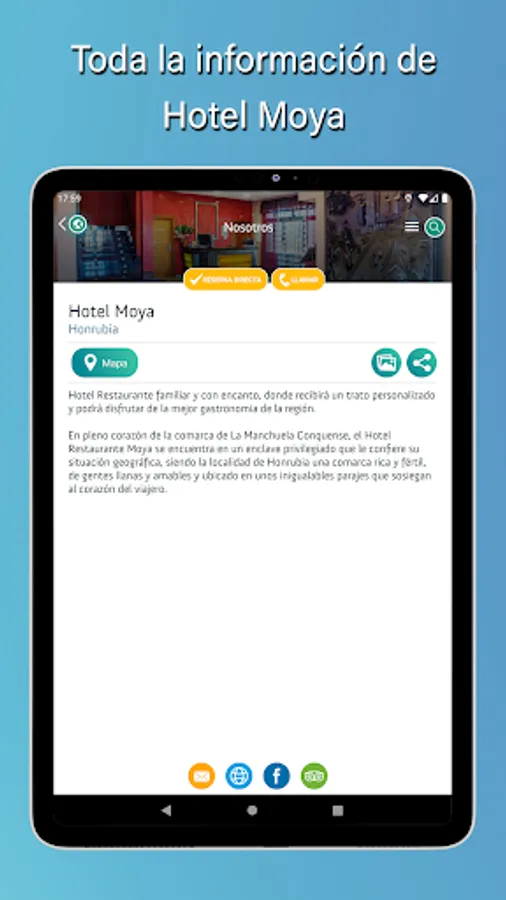 Cuenta además con un sistema que te permitirá marcar todas tus opciones favoritas para planificar mejor tus vacaciones. Con nuestra guía de Hotel Moya en Landete, podrás encontrar los mejores sitios de la zona. A través de su buscador de recursos puedes escribir lo que buscas y la app de informará en cada caso donde puedes encontrarlo.