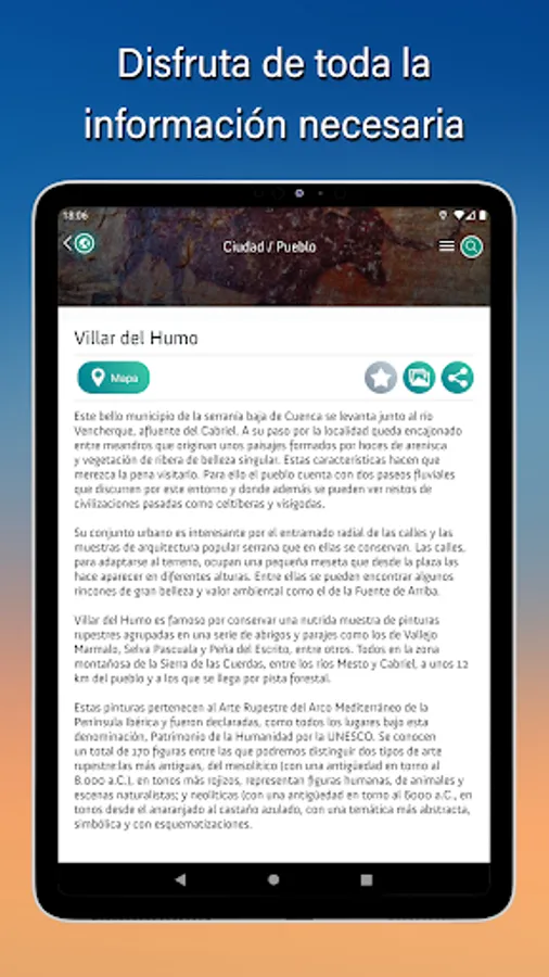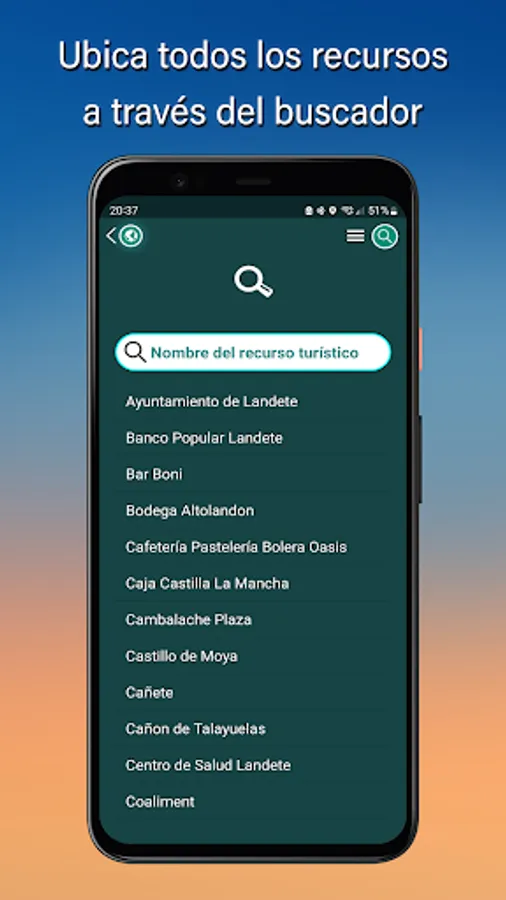 With our app you will be able to see first-hand a guide in digital format configured as a virtual tourist office about Landete and its surroundings, GPS-guided routes, nature, activities and special itineraries, gastronomic, cultural and leisure proposals.