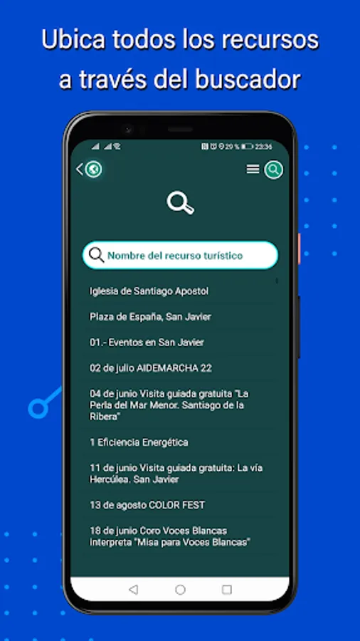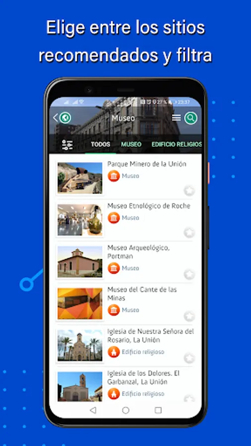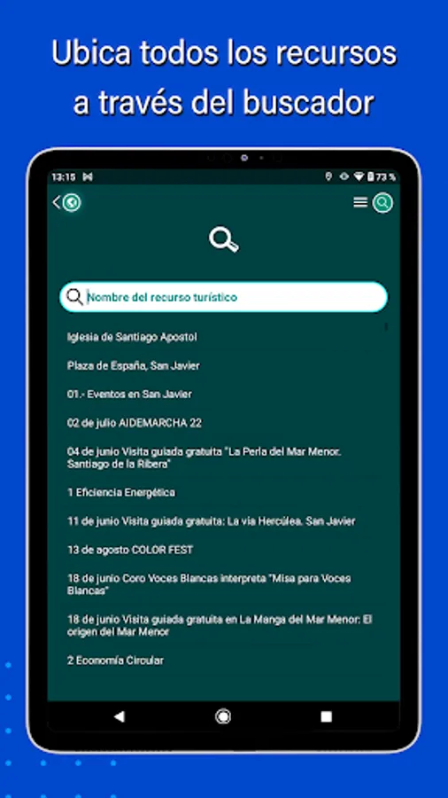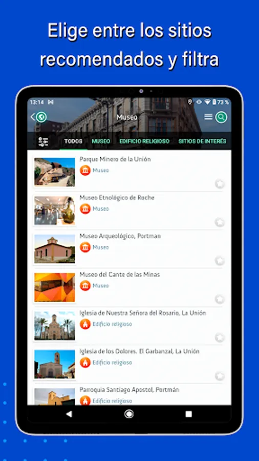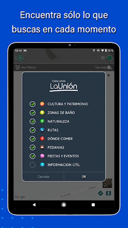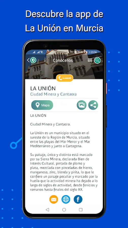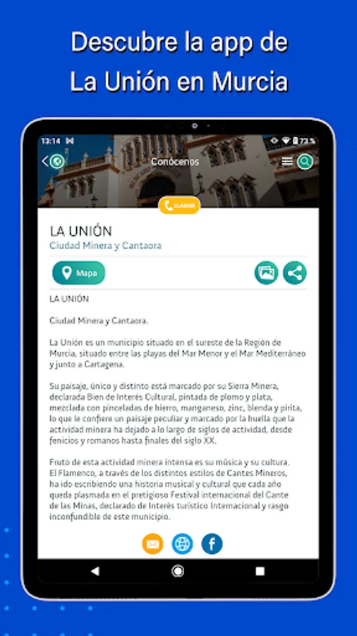 And all this can be used without an Internet connection. Once downloaded for the first time, you will have all the resources without wifi or mobile data. You can use "Discover La Unión" anywhere without coverage and without fear of losing your information.