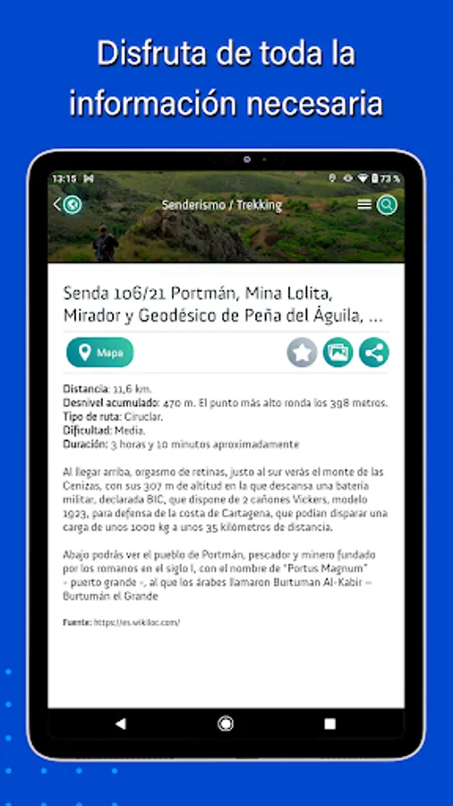 With "Discover La Unión" you can navigate hiking or biking routes and even motorcycle routes through its GPS navigation system.
