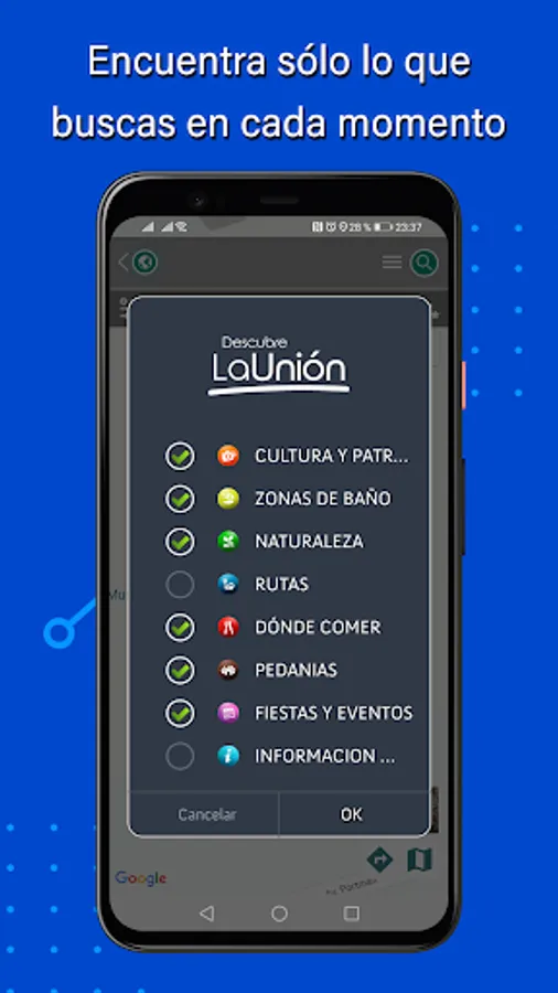 Download our application and start enjoying the best recommendations in the environment in a comfortable and simple way on your mobile, with the particularity of not needing an Internet connection! The best tourist information to plan your trip to La Unión.