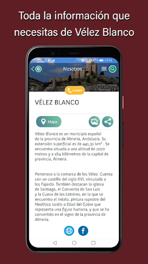 Download our application and start enjoying the best recommendations in the environment in a comfortable and simple way on your mobile, with the particularity of not needing an Internet connection! The best tourist information to plan your trip to Vélez Blanco.