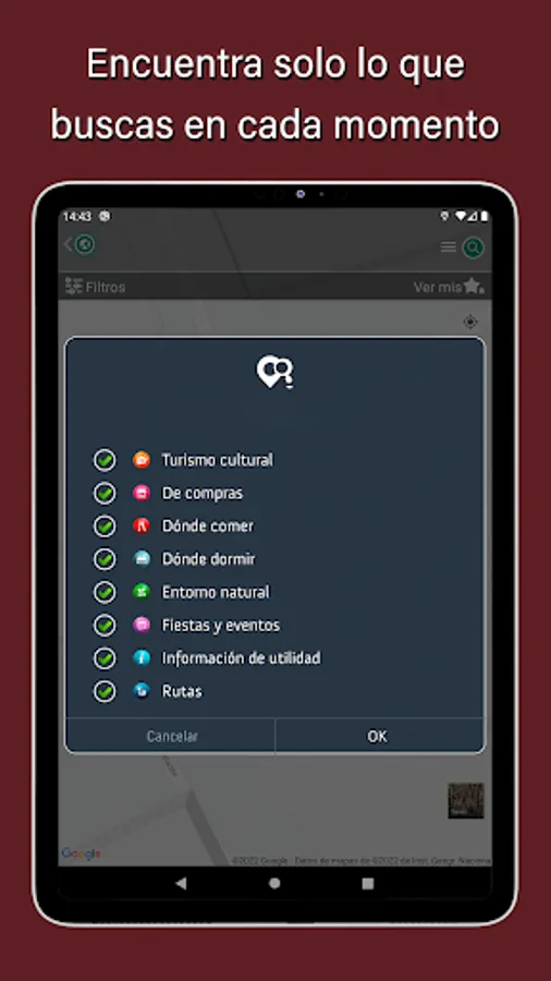 This travel app will make you enjoy content organized by categories and subcategories that will allow you to navigate optimally through them and thus find what interests you the most. And even all those resources will have the option of how to get there.