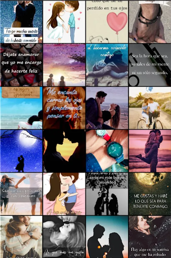 In love images and love messages you can find a large number of love phrases to share with your partner. All Images to fall in love are totally free. This application requires an internet connection to function properly and you can share your romantic images without any difficulty.