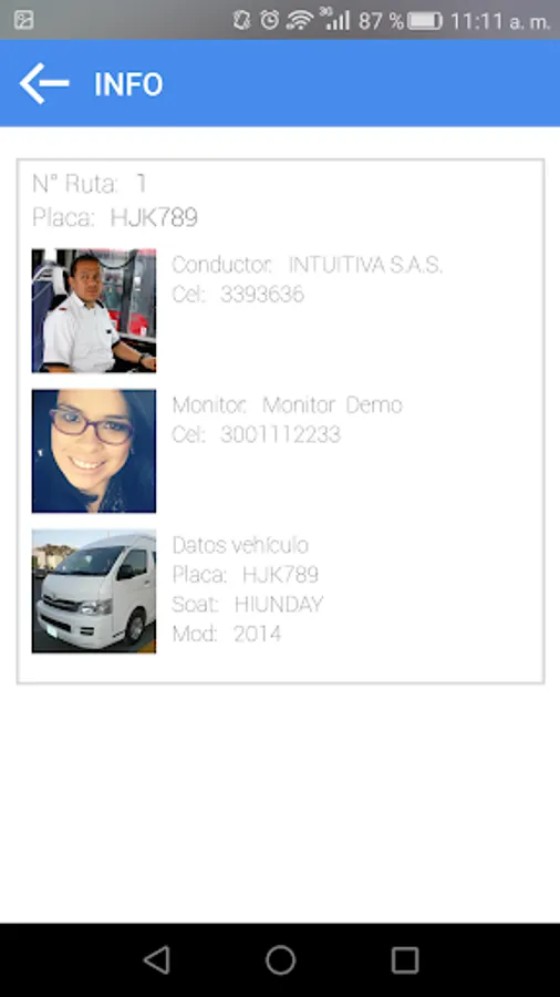 This APP is a tool of control and quality of service prepared for parents of students who are transported in vehicles affiliated with our company.