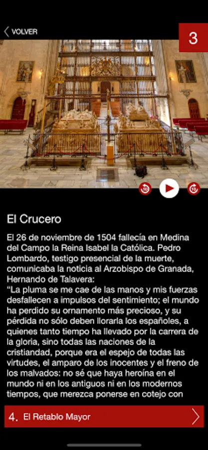 Through the app of the Royal Chapel of Granada you can visit the monument while listening to each of the information points that you will find in the different parts of the monument.