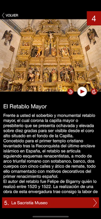With the official audio guide of the Royal Chapel of Granada you will be able to find information on all the points of visit of the monument.