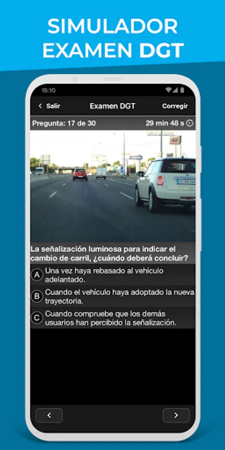 Make a simulation 100% faithful to the DGT test that you will take on the day of the exam. When you finish you will see the mistakes made and a complete review of the test.